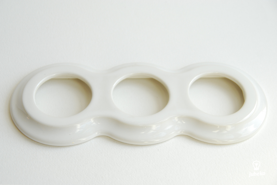 Posliininen kehys kolmelle Ida- tai Sat-sarjan uppoasennettavalle posliiniselle kytkimelle tai pistorasialle.