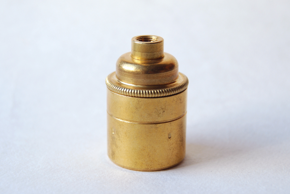 Misiņa E27 lampas ligzda, iezemēts, antīka zelta apdare.