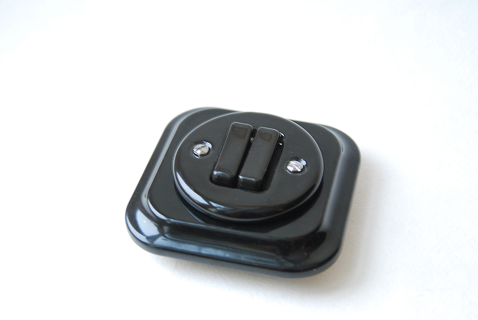 Sienas slēdzis, melns, porcelāna.Jūs varat iegādāties vienu, dubultu vai trīskāršu porcelāna rāmi.Rā..